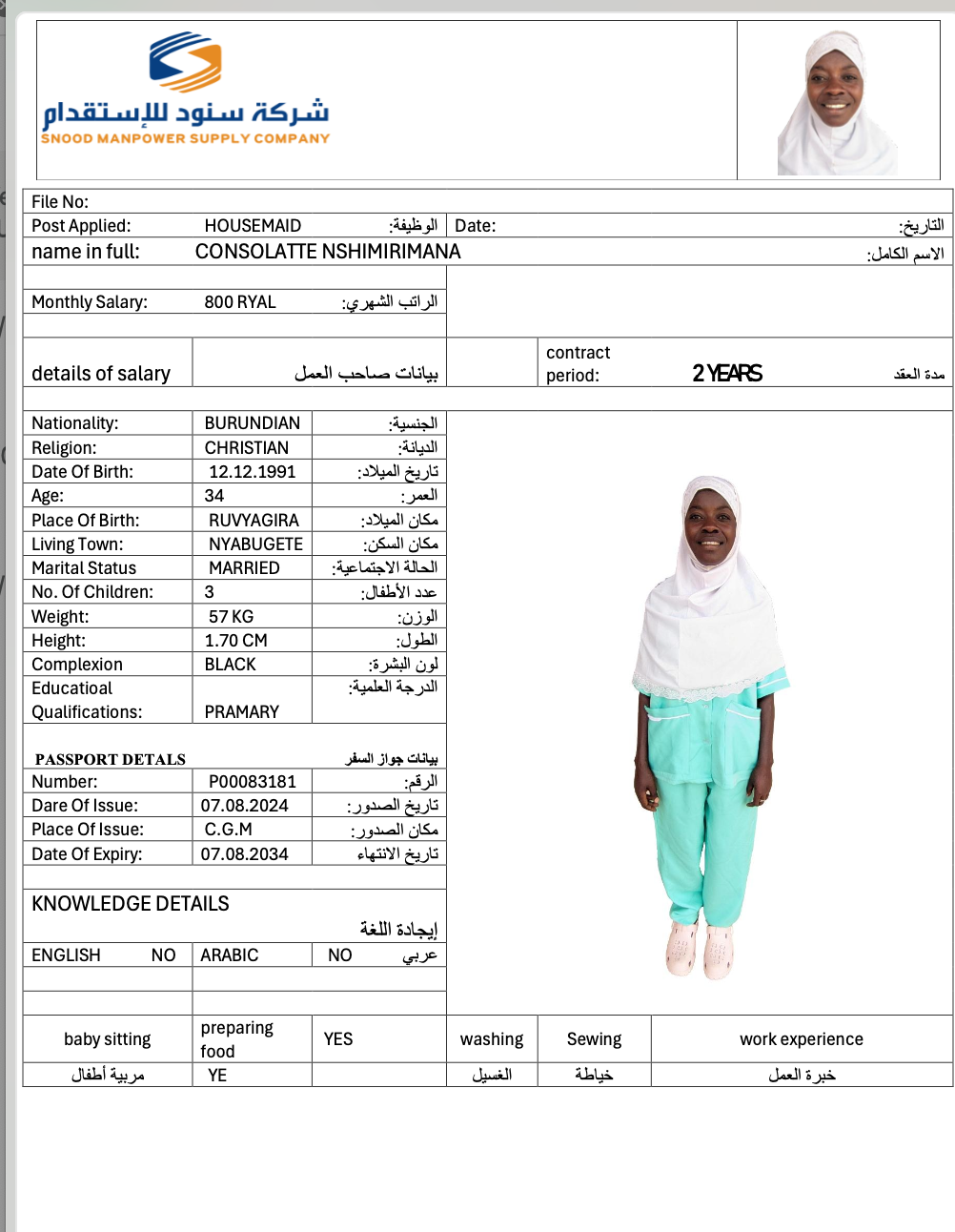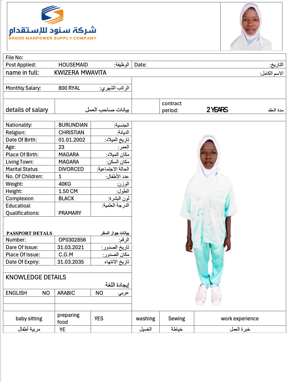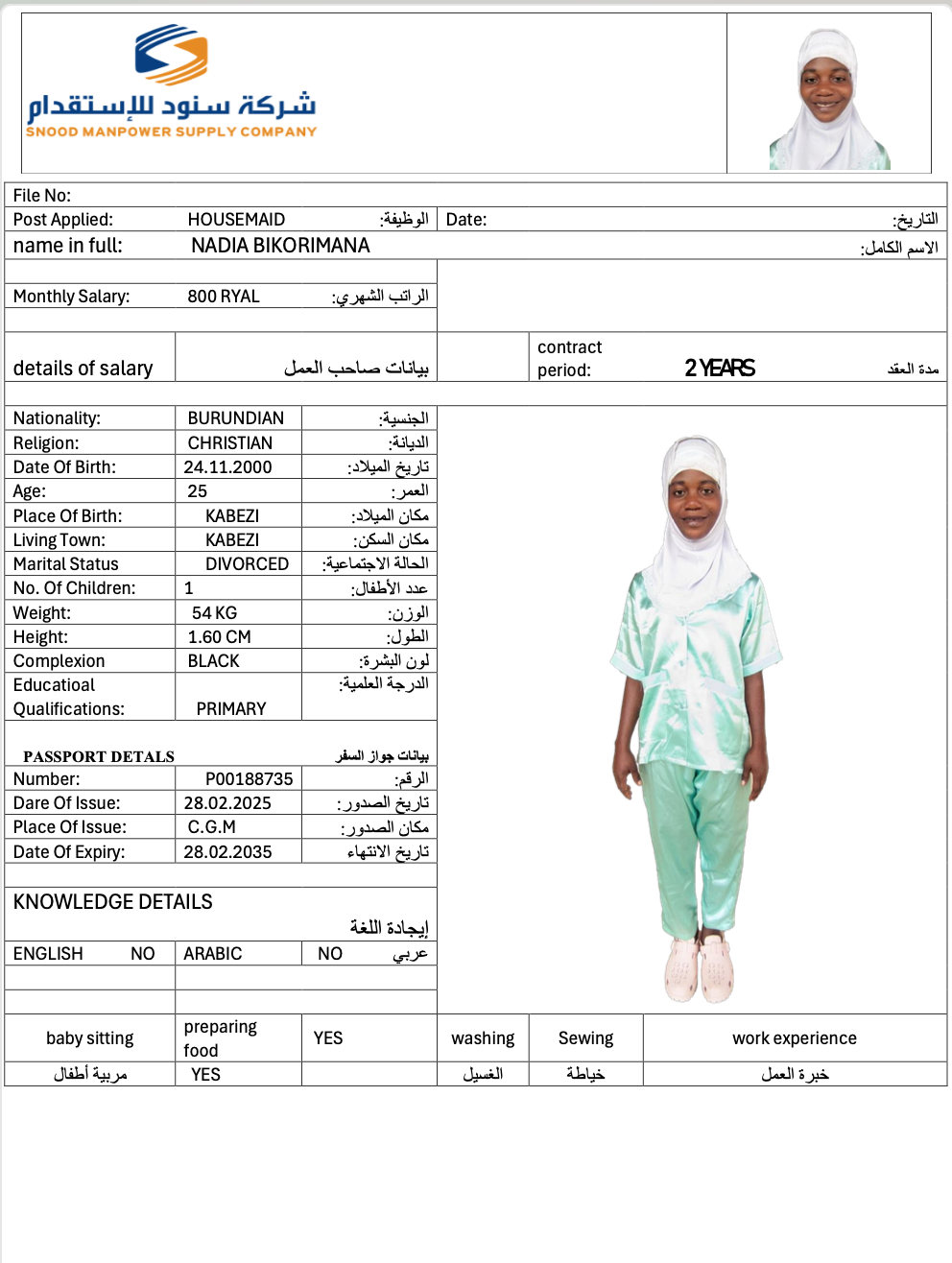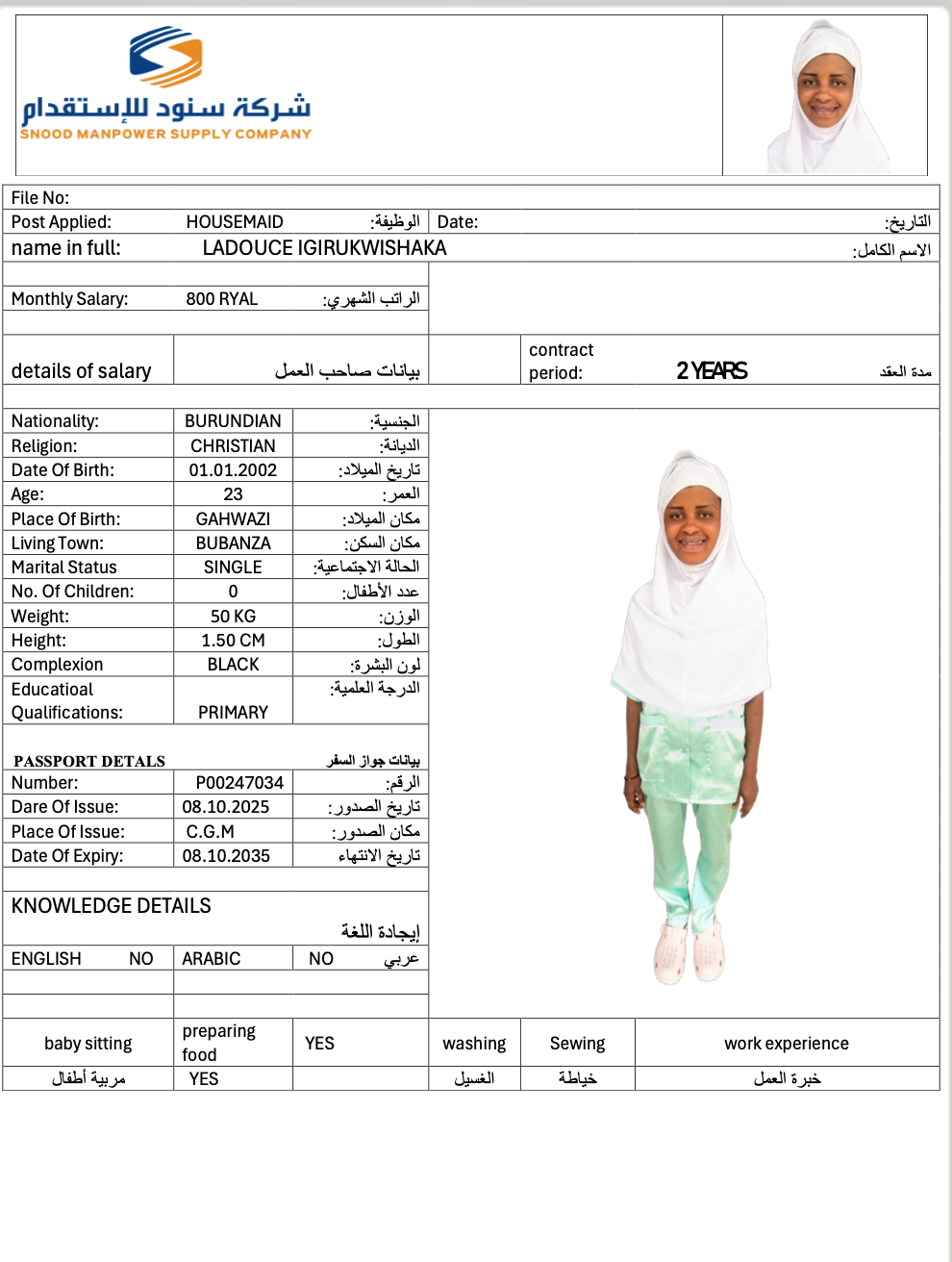 عاملة منزلية | لم يسبق لها العمل