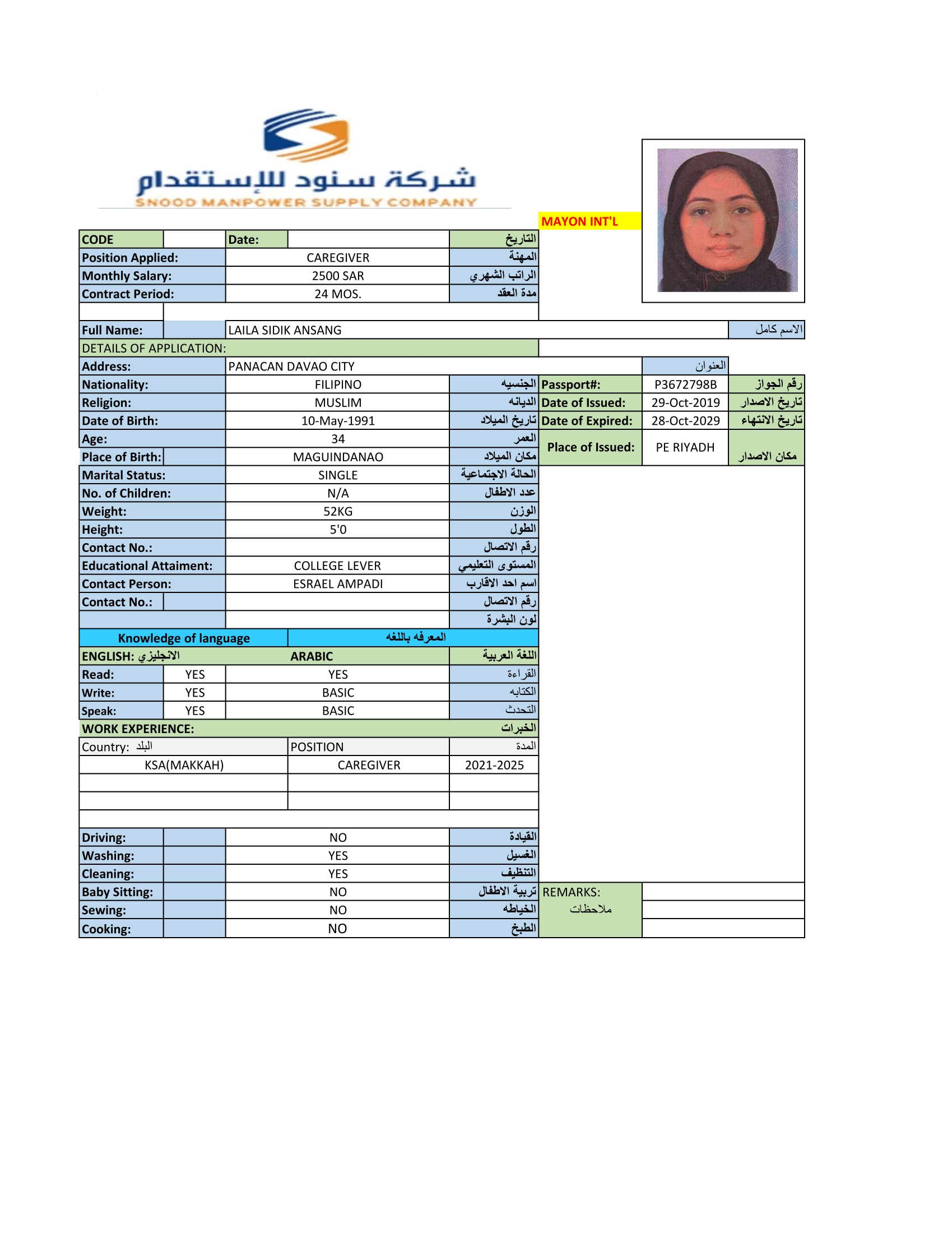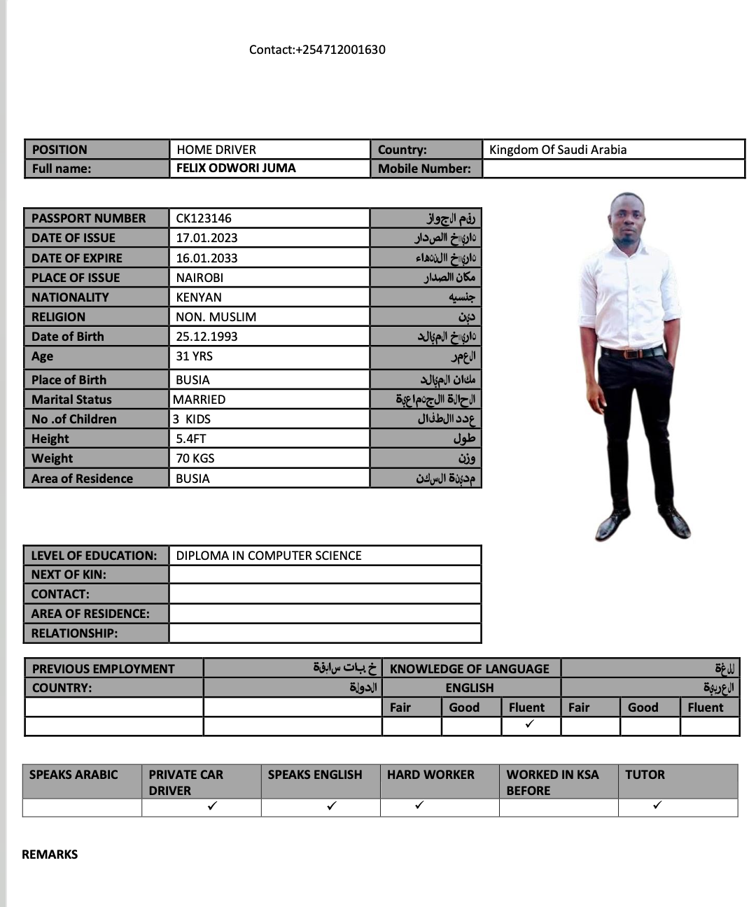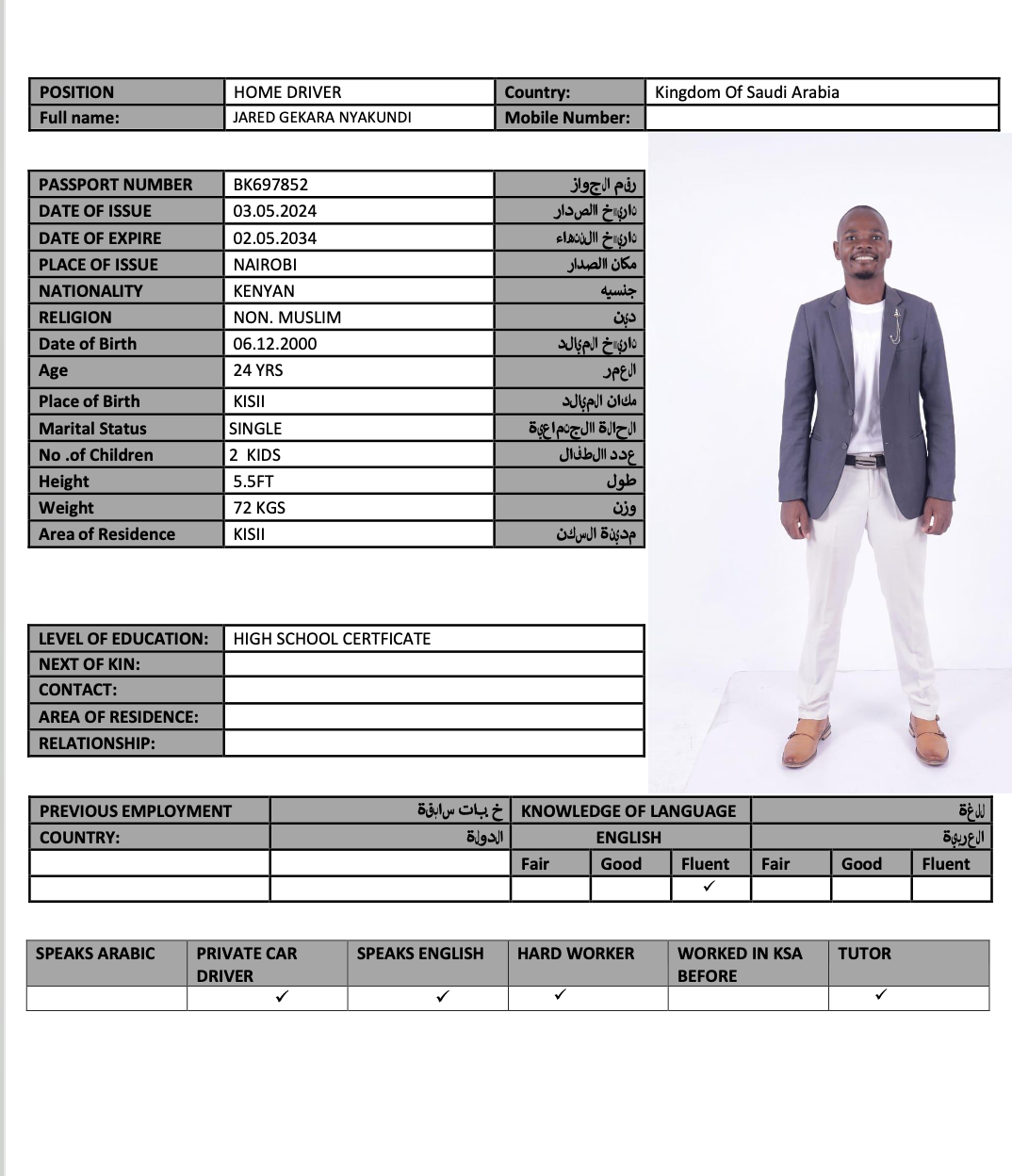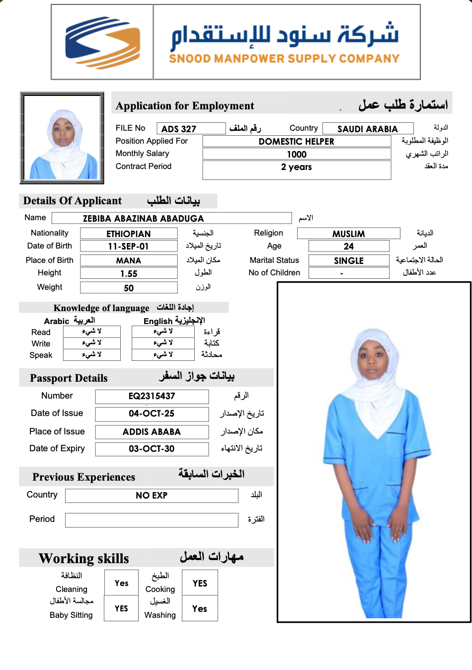 فى حالة عدم توفر السيرة الذاتية المطلوبة -