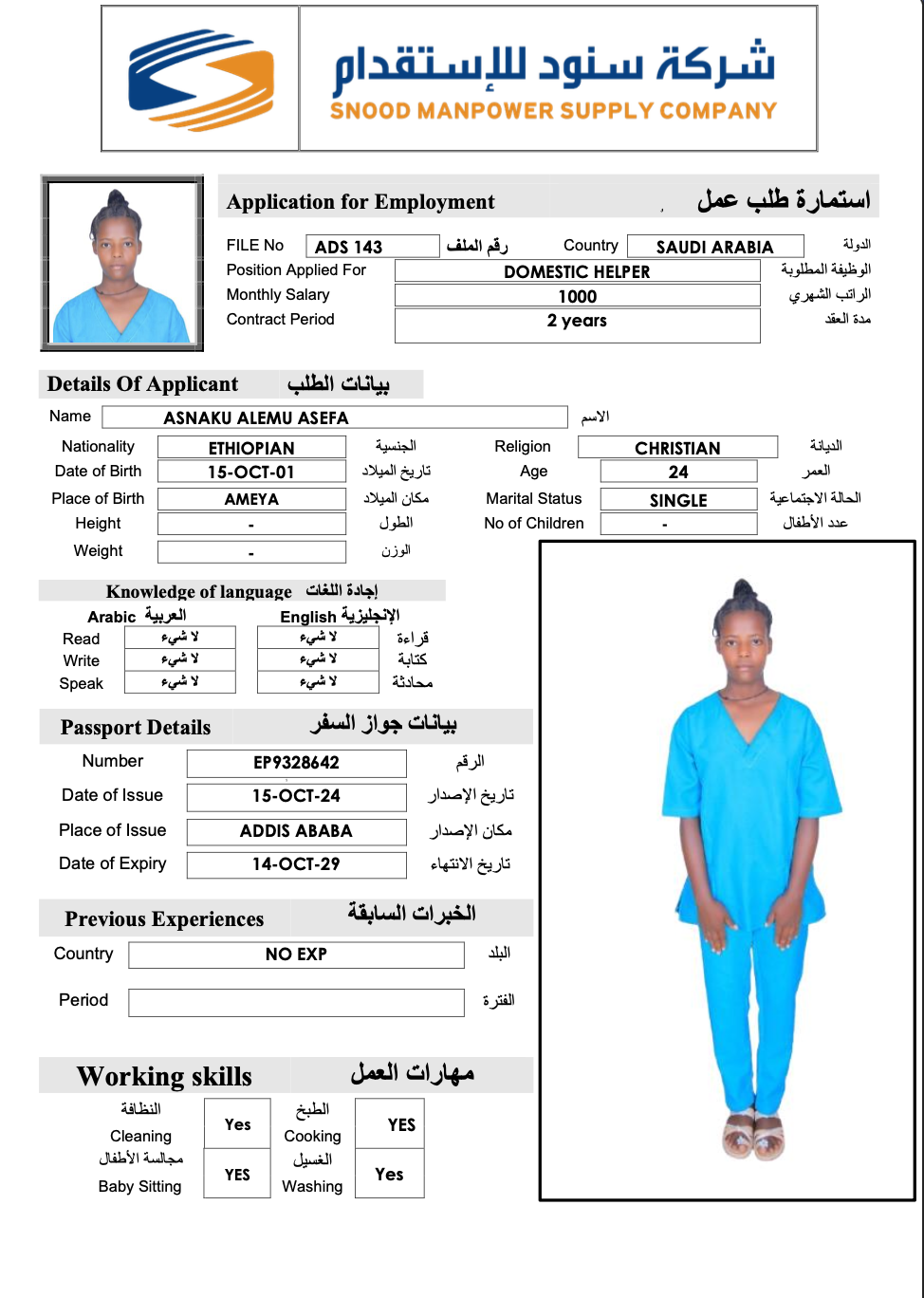 فى حالة عدم توفر السيرة الذاتية المطلوبة -