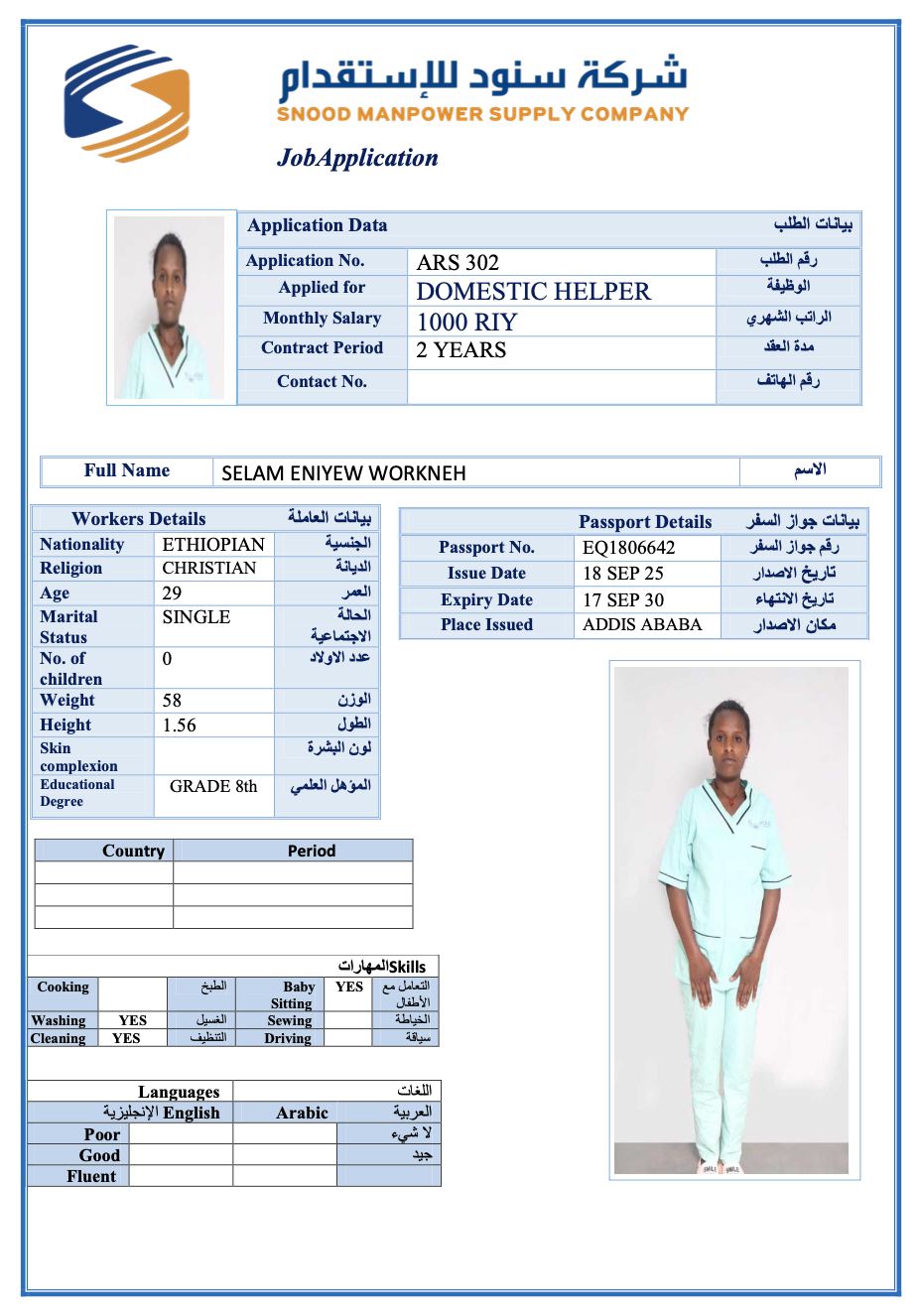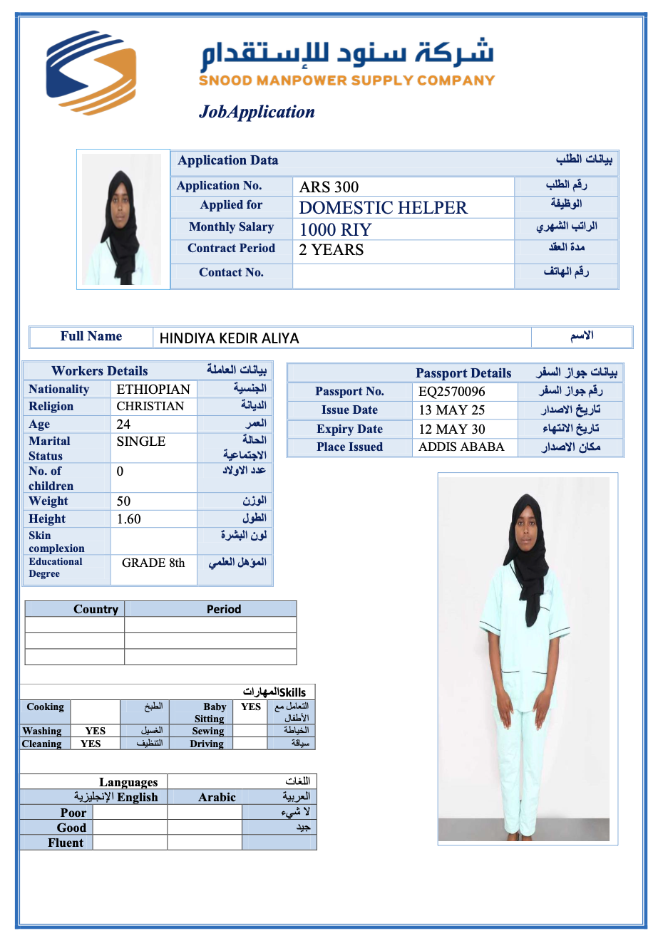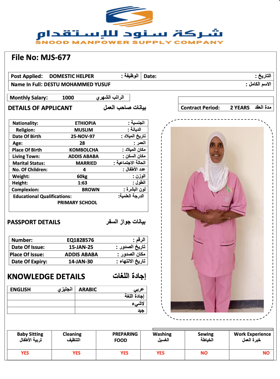 عاملة منزلية | لم يسبق لها العمل