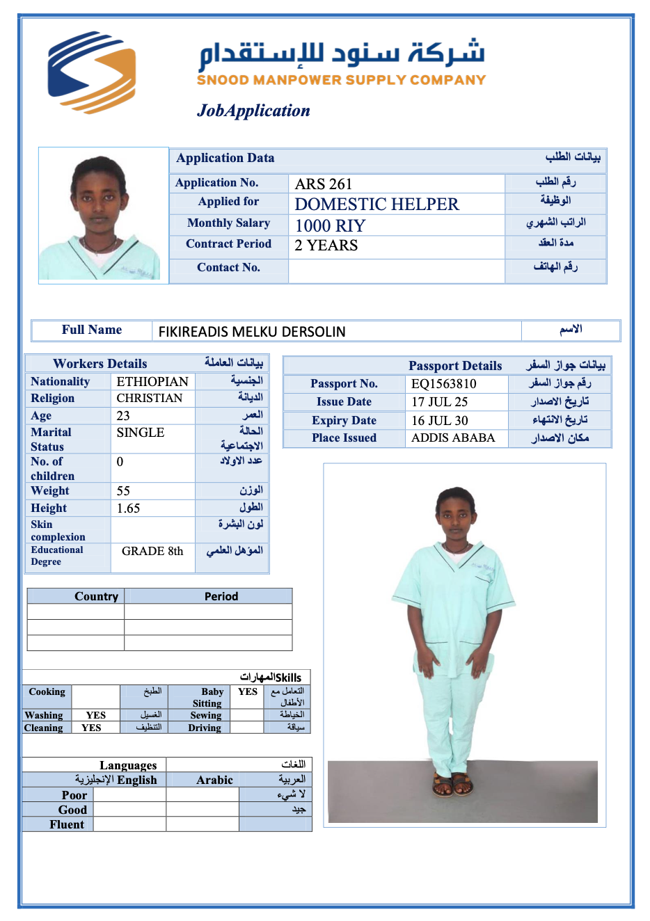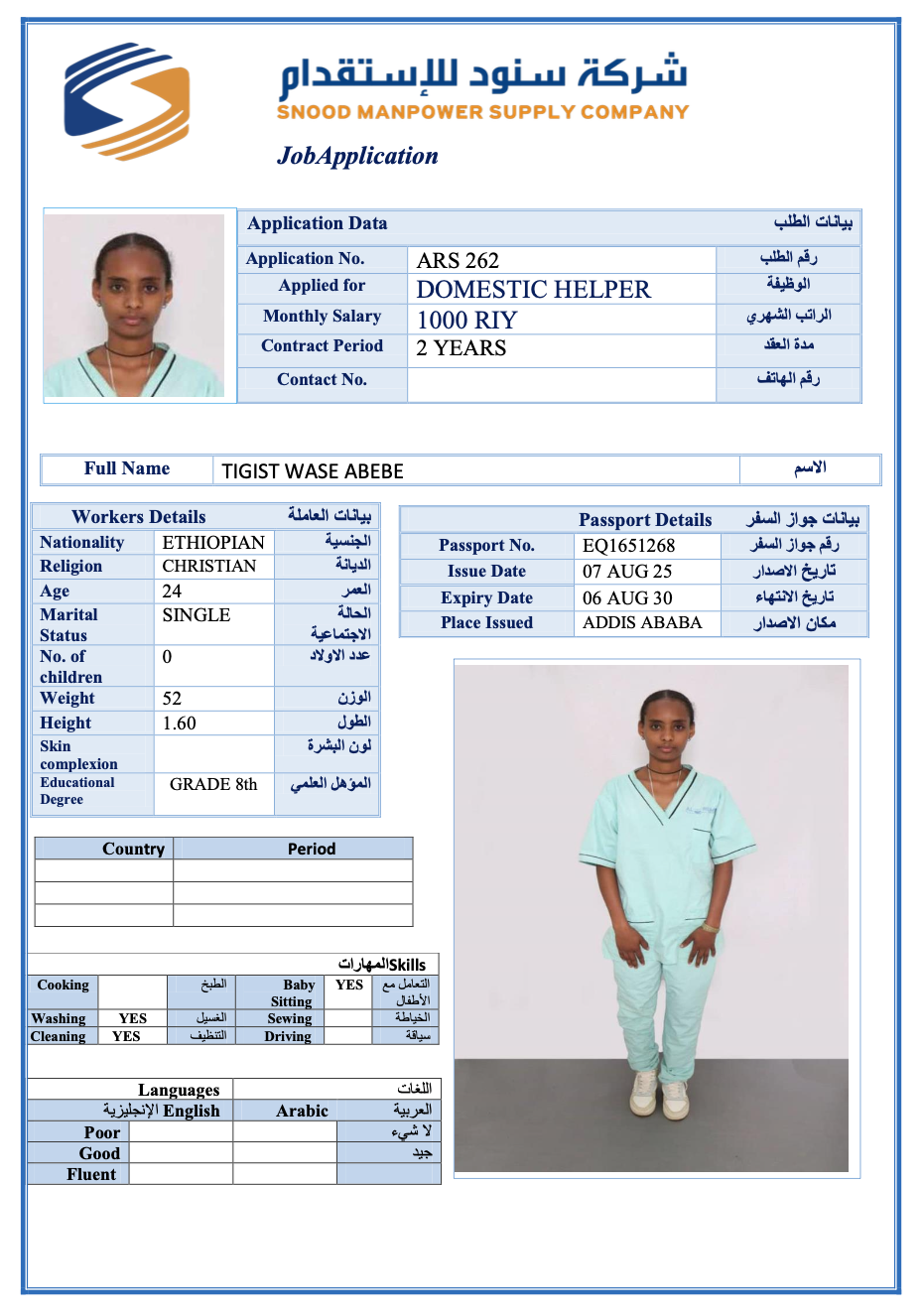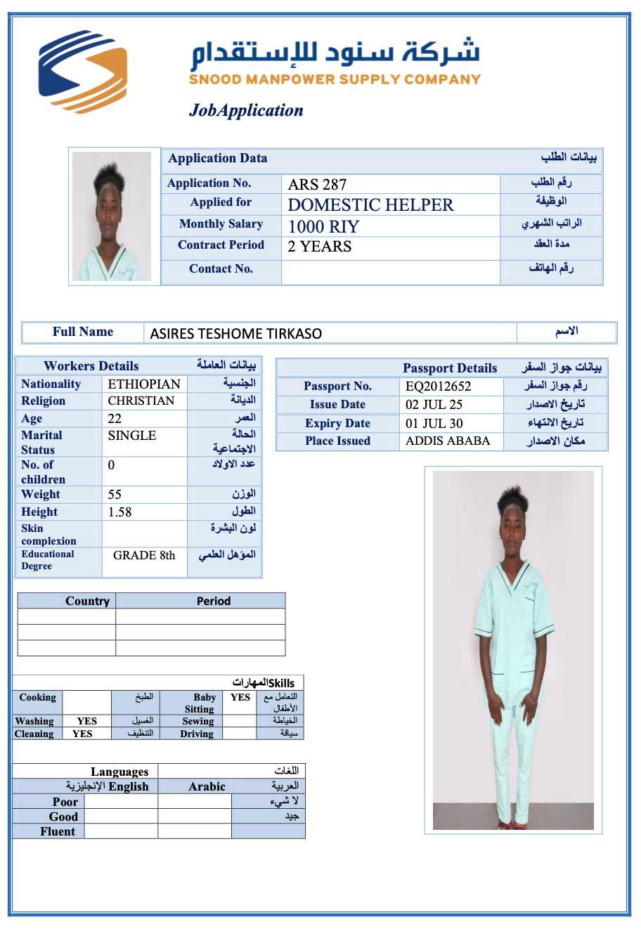 عاملة منزلية | لم يسبق لها العمل