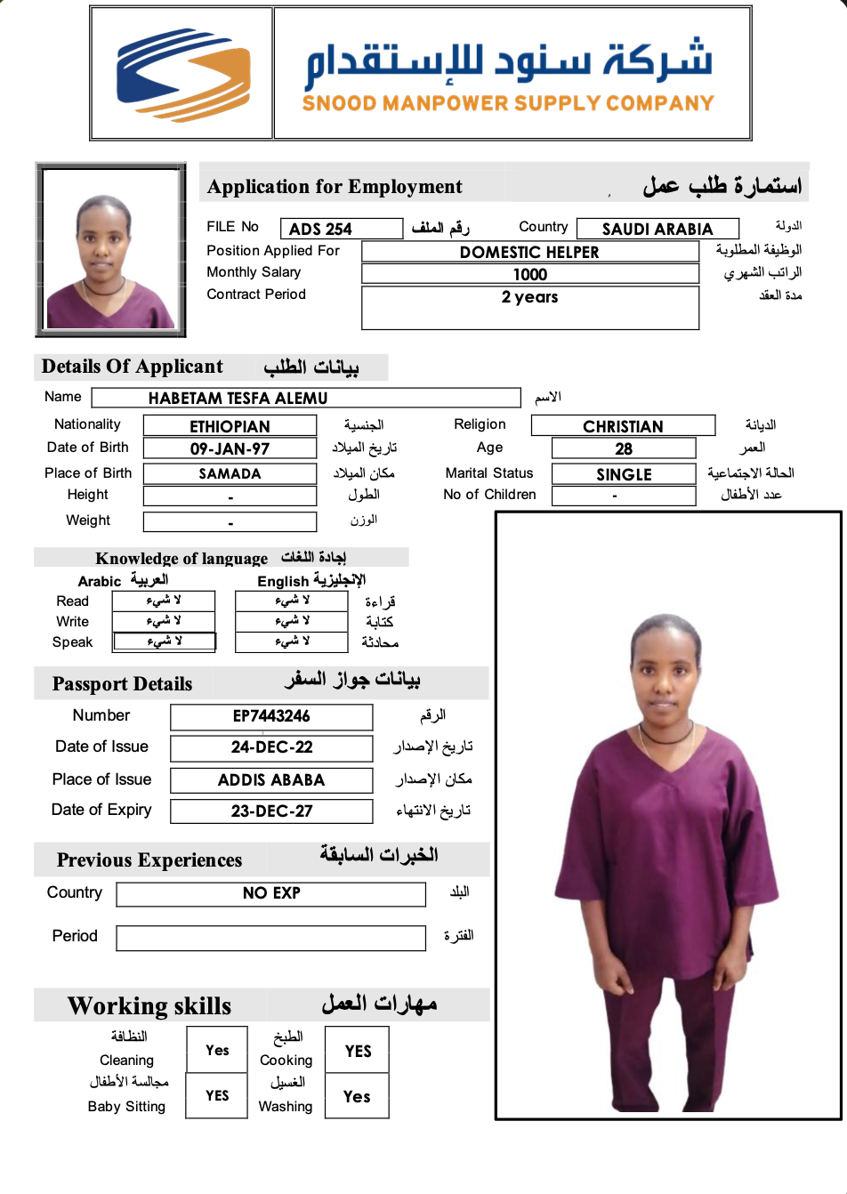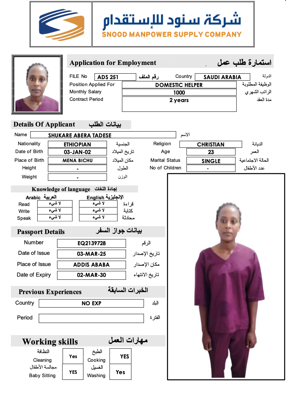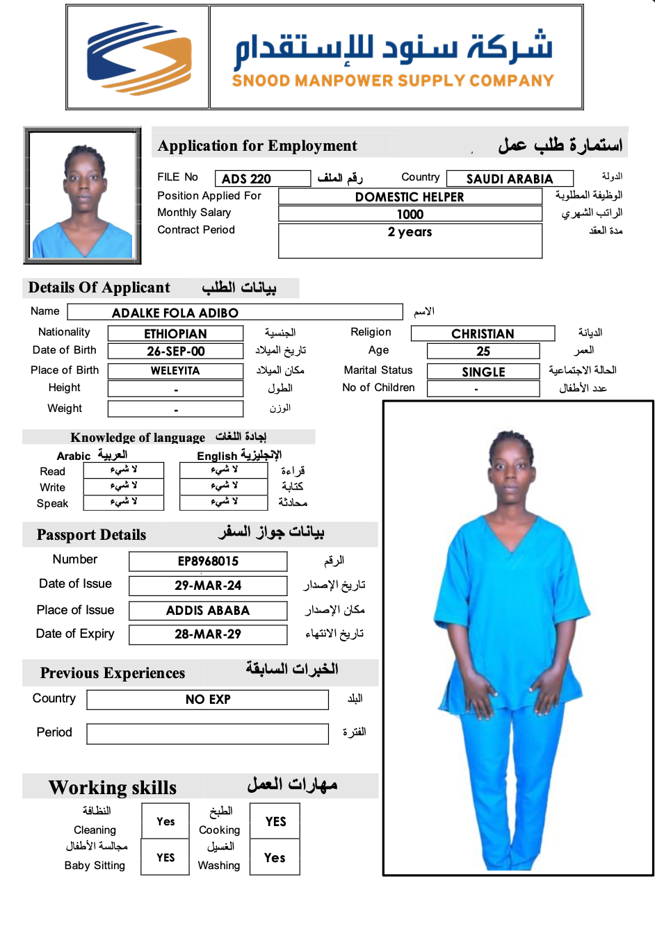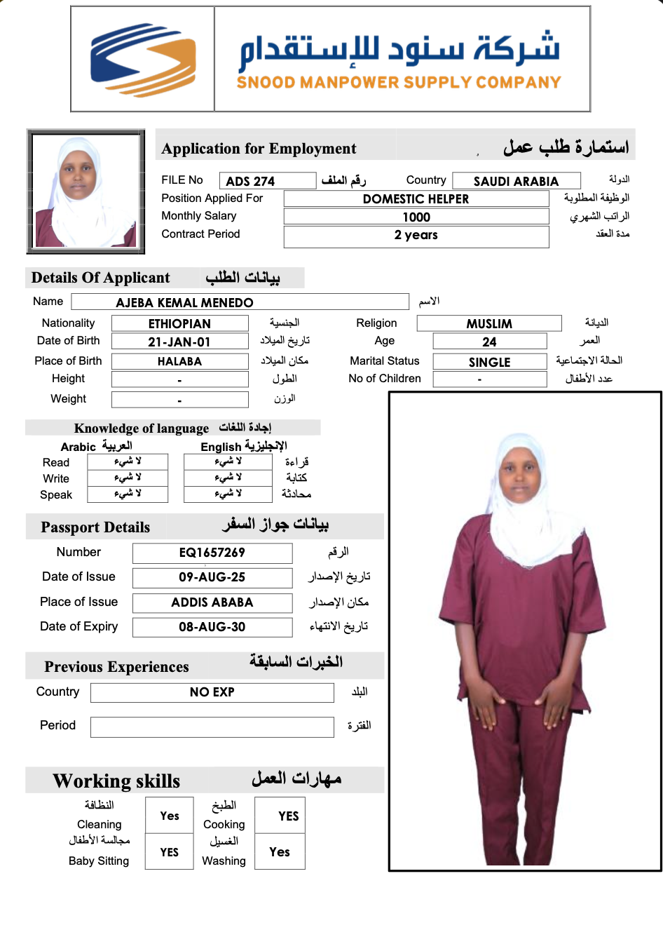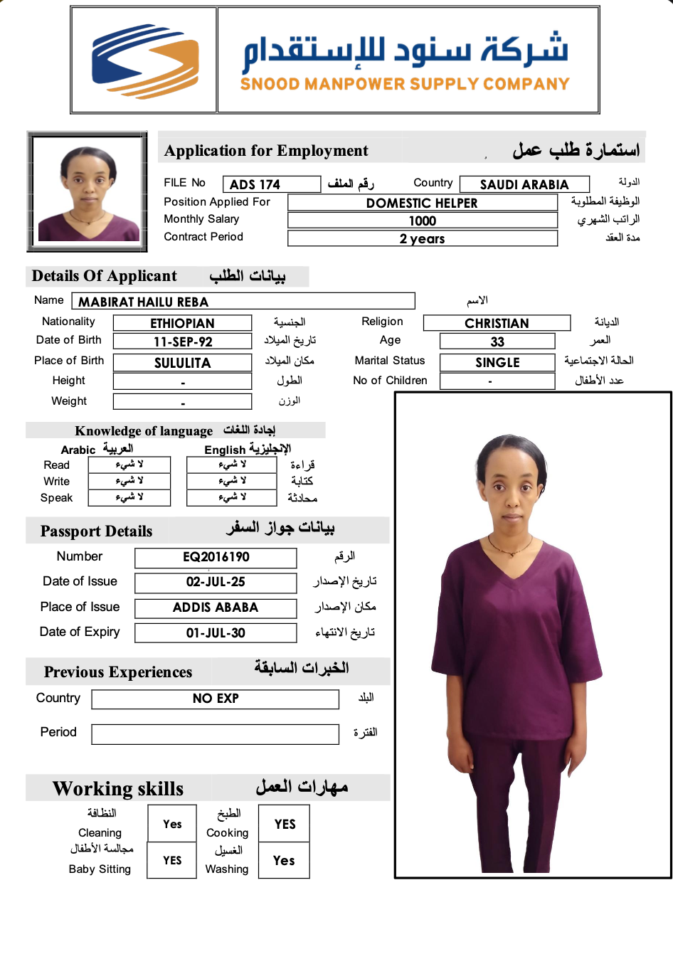 فى حالة عدم توفر السيرة الذاتية المطلوبة -